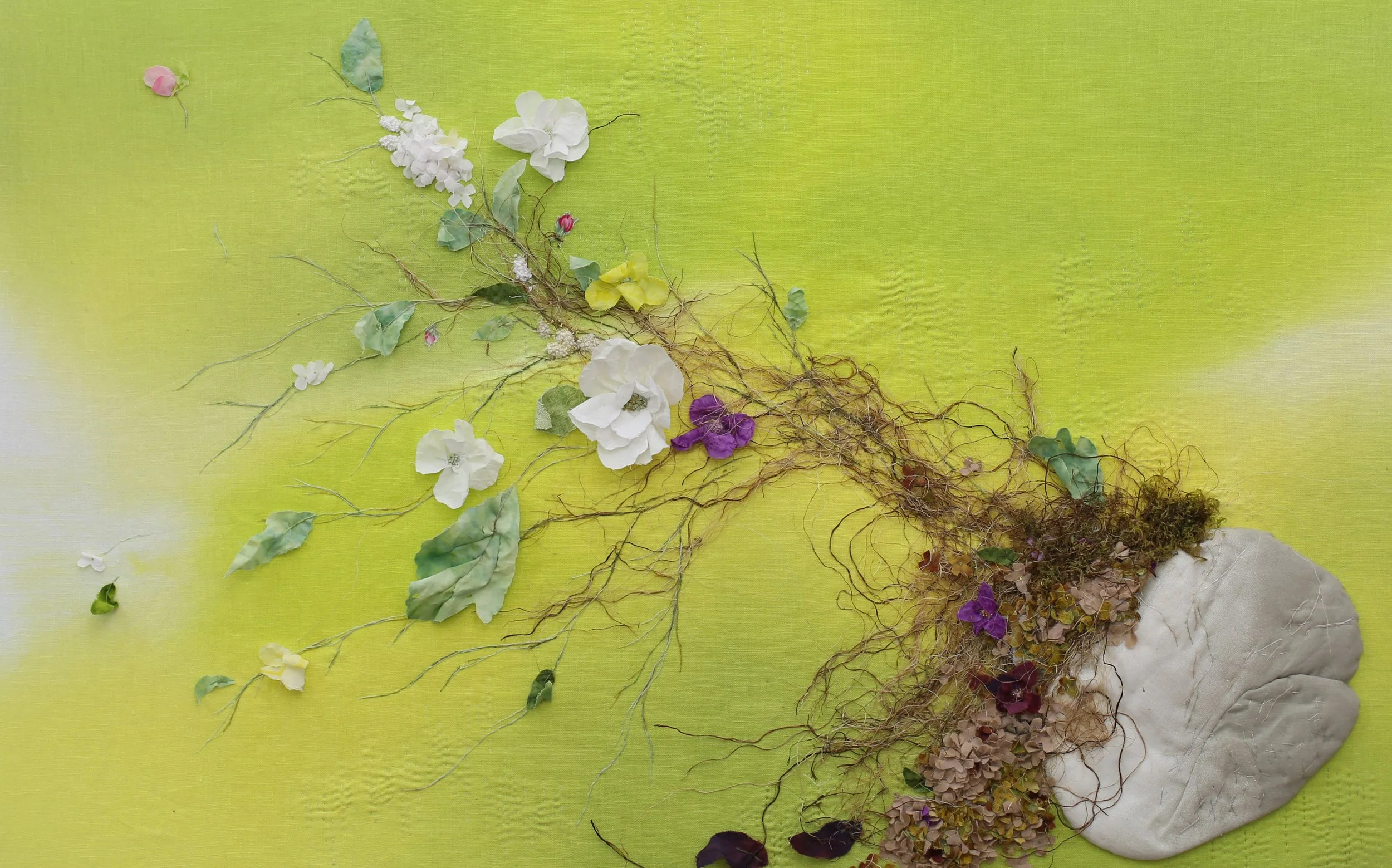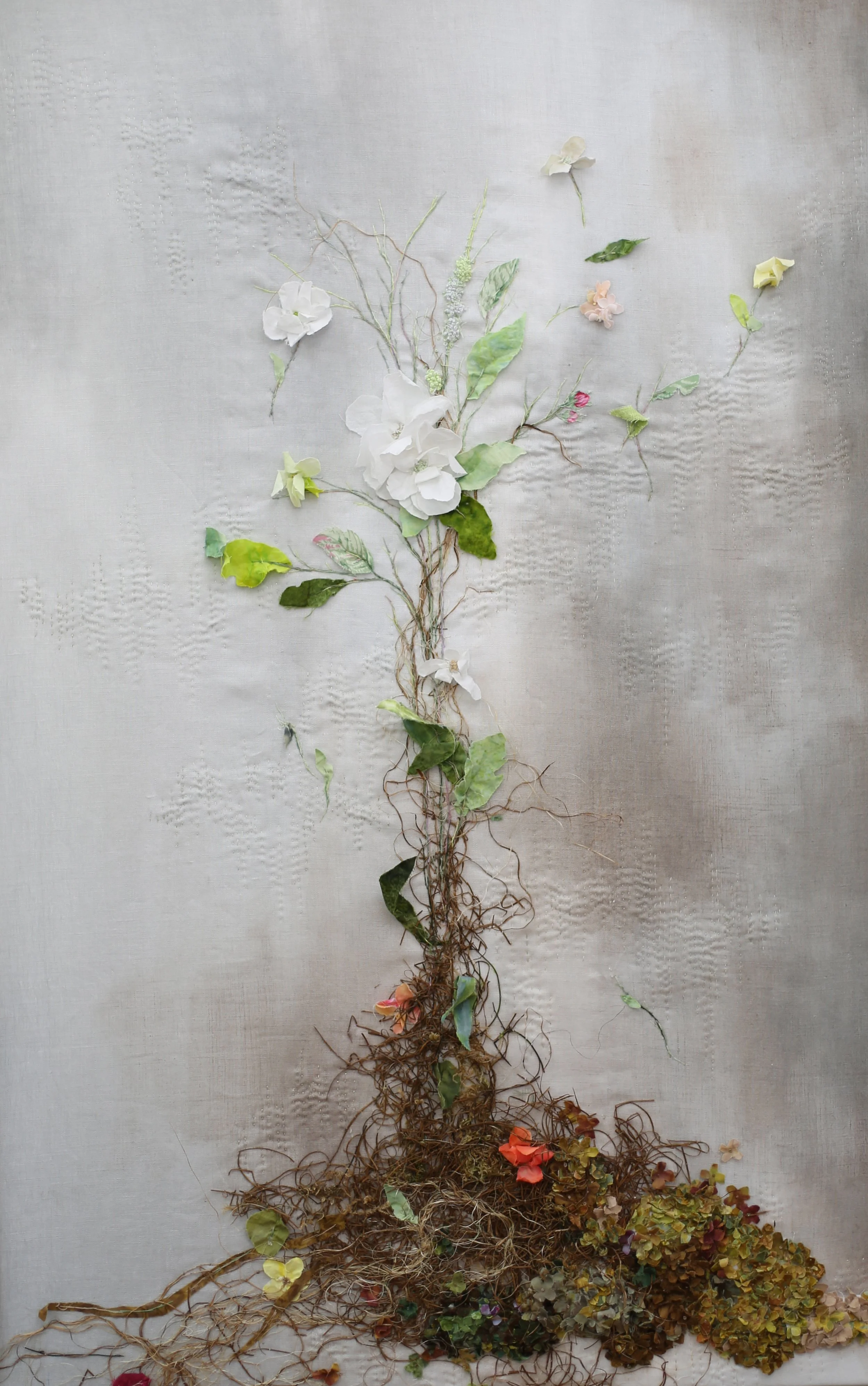 Selling Enduring Tansy 5.5” x 29.5” cotton, linen, twine, embroidery, quilting 2021